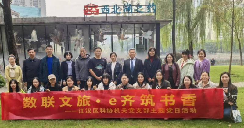 为深入学习贯彻二十届四中全会精神,有关“加快推进高水平科技自立自强,引领发展新质生产力”的战略布局。11月11日上午,江汉区以“数联文旅·e齐筑书香——科技与文化科普融合创新交流行”为主题的科技阅读智慧行活动顺利举行。江汉区政协副主席张智勇、华中科技大学图书馆党委委员、副馆长姜燕兰、区科协党组书记、主席郑瑢、区科协二级调研员梅智云、区科协副主席、党组成员汪昆、区文化和旅游局副局长翟好斌、区图书馆馆长赵晶、华中科技大学图书馆读者服务部主任姜海洲、华中科技大学图书馆读者服务党支部书记、读者服务部副主任刘畅、华中科技大学图书馆读者服务部副主任范丽珍等领导及相关单位代表一道,先后走进江汉区图书馆分馆・金桥书院、汉口非遗圈、德芭与彩虹书屋,在实地探访中感受科技与文化、科普碰撞的别样魅力。