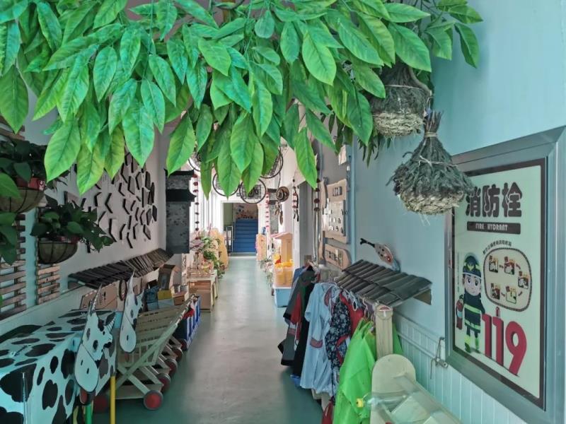 慢慢地,我知道除了我所在的“百灵农场”,“百灵小镇小人国生活馆”里还有“百灵园中园”、“百灵家政”、“百灵厨房”、“百灵茶社”、“百灵工地”、“百灵回收站”、“百灵快递”等。里面投放了很多来源于生活的活材料,如“百灵家政”里供小朋友们收纳、整理的衣柜和练习家务劳动的清洁车;“百灵茶社”里供小朋友们泡茶的茶具、收纳罐、簸箕;“百灵园中园”里供小朋友们扮演教师用的钢琴、画板、木偶架、小床、餐桌、餐具等。