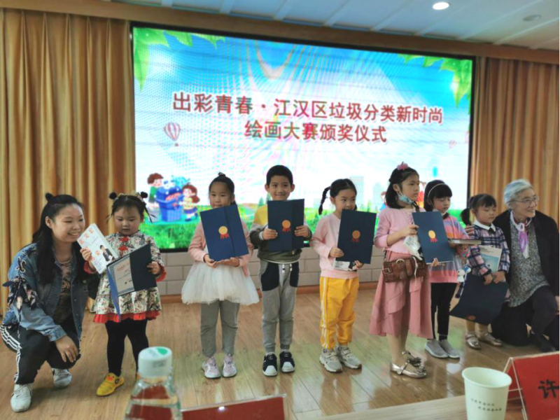 9月26日,由团市委支持,区科协、团区委、唐家墩街工委主办的“出彩青春·江汉区垃圾分类新时尚绘画大赛颁奖仪式暨垃圾分类公益歌曲《‘分’享新时代》少年版MV发布活动”在唐家墩街马场社区举行。